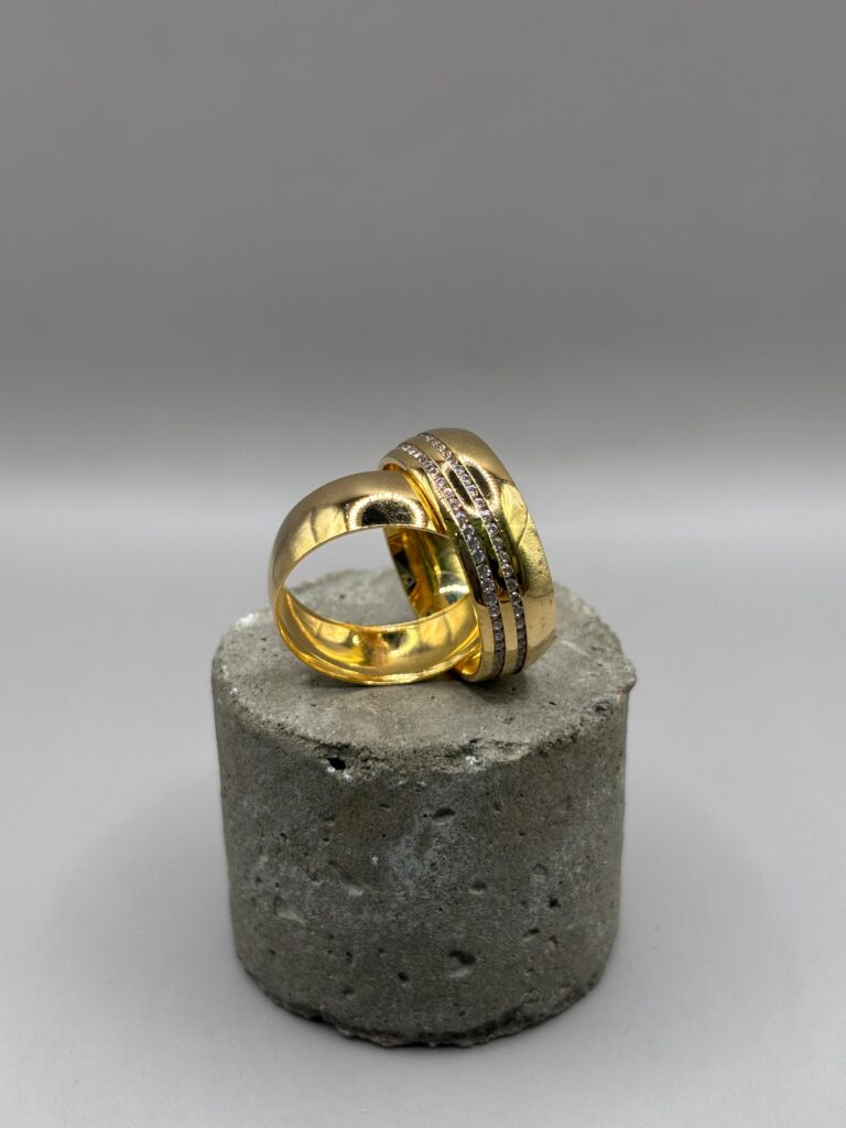 Um dos maiores símbolos da união entre duas pessoas, pode ser fabricado na empresa junto com os clientes. Tamanhos de pedras, desenhos, espessuras, detalhes exclusivos, aqui você realiza.